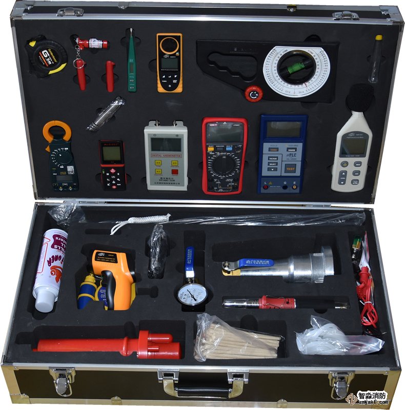 配置:感烟探测器试验装置;感温探测器试验装置;水喷淋系统试水检测装置;消火栓系统试水检测装置;数字兆欧表;数字噪音计;数字微压计;数字测距仪;红外测温仪;垂直度测定仪;多功能工程坡度测定仪;四合一测量仪(温度、湿度、风速、照度);钳形电流表;数字万用表;数字秒表;附件:数字试电笔、钢卷尺、打火机加热笔附件盒、发烟棒盒、烟嘴、充电器、丁烷气瓶、仪表测试笔、、多功能刀。