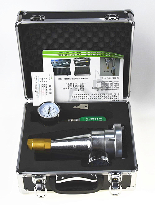 (2).将带有压力表一侧连接到水喷淋末端(如末端为外丝可直接与本装置连接,如末端为内丝需安装变丝);